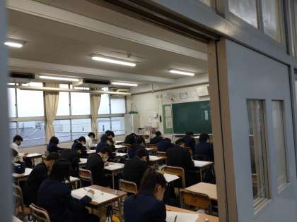 今日は1年生のみ2教科、2・3年生は3教科のテストを実施しました。疲れがあったかもしれませんが、生徒のみなさんはテスト問題に全力で臨んでいました。