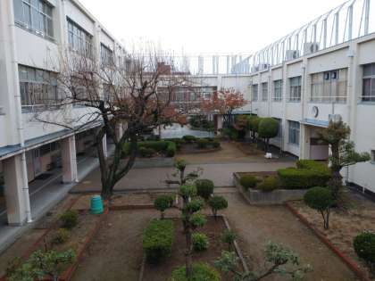 中庭の様子です。テスト中から雨が降り出し、画像もどうしても暗く写ってます。
