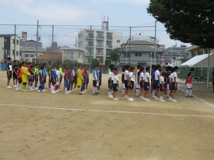 今日はサッカーのブロック大会の最初の試合が本校で行われました。大領中学校は第1試合で東我孫子中学校と対戦しました。開会までの全体への指示・注意の後、いよいよ試合が始まりました。