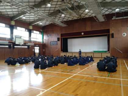 3年生は6時間目、体育館に集合し、私立高校の出願に向けた説明がありました。