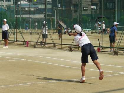 今日は7ブロックテニス大会が大領中学校で開催されました。朝出勤したら閉まっている校門の前に他校の選手が数人すでに待っていました。本校の生徒も大会の準備、また練習したりと炎暑の中汗を拭きながら頑張っていました。今日はシングルスの試合でしたがそれぞれの係り生徒はとても機敏に動いていました。また、しっかりとあいさつもできていてとても気持ちよく観戦することができました。