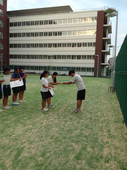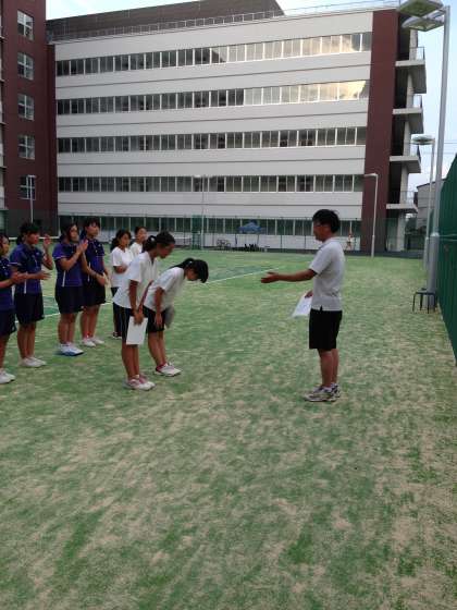 女子の硬式テニスダブルスの試合が6日浪速中学校で開催されました。この大会で本校は優勝と三位という結果でした。おめでとうございます。表彰式の様子をアップしました。ご覧ください。