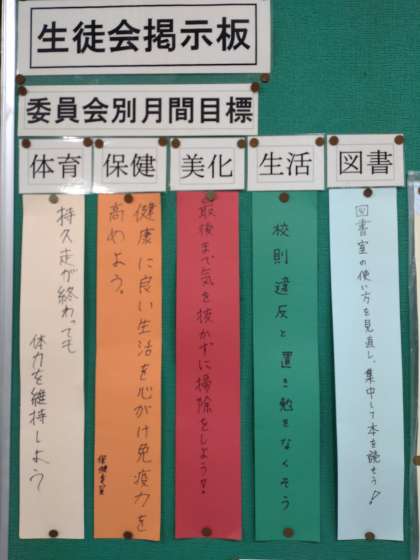 先日開かれた各種委員会で決められた目標が掲示されました。