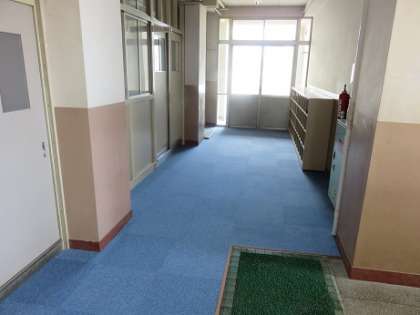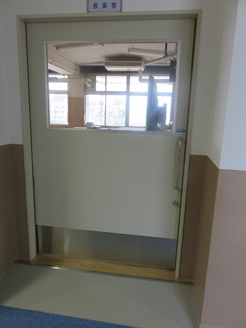 音楽室の改修に合わせて教室前に上履きに履き替える場所となるよう新たにシートを張り、下靴を入れる靴箱も新たに設置しました。新しい音楽室は二足制として教室の前で上履きに履き替えることとしました。このことで音楽室の床の痛みを防止することができます。また、隣のパソコン教室の前にも同様にシートを張りました。それぞれの教室の前の廊下がとてもきれいになりました。