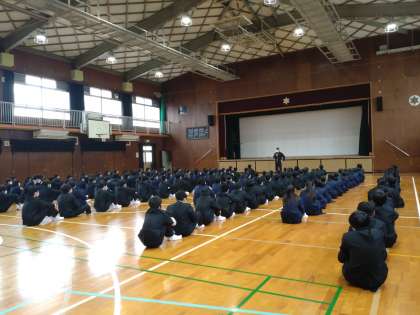 今日はいよいよ令和4年度の修了式。1・2年生が体育館に集合し、式が行われました。