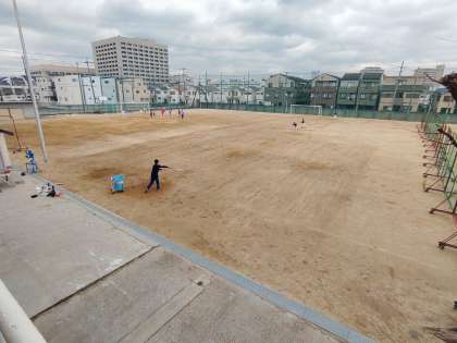 午前中のグラウンドではサッカー部や野球部、テニス部が活動しています。天気が心配されるところですが、今のところ雨も降らず、支障なく活動できています。