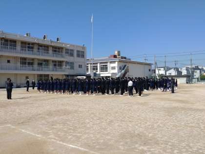 いよいよ新学期のスタートです。今日は全校生徒がグラウンドに集まり、始業式を行いました。