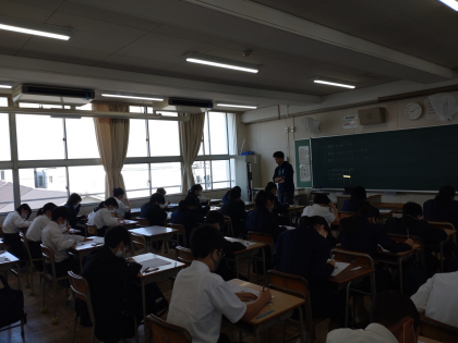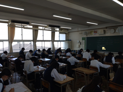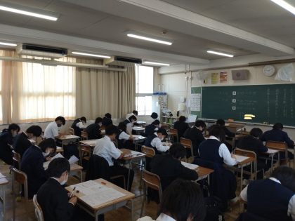 画像は初めての定期テストに挑む1年生のみなさんの様子です。集中して取り組んでいます。