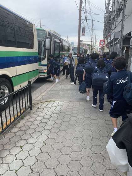 バス乗車の様子です。 たくさんの見送りありがとうございます!