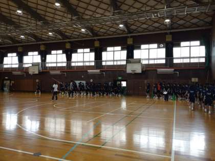今日も残念ながら雨のため、1年生の体育大会学年練習は体育館で行いました。