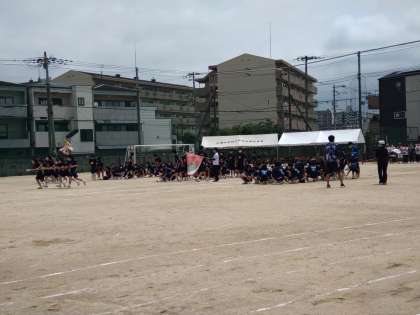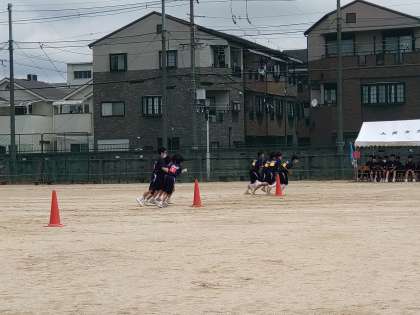 4人1組で竹の棒をコントロールしながらリレーしていくクラス対抗競技です。
