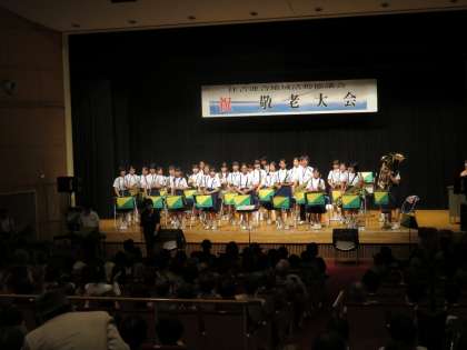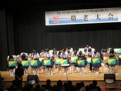 住吉連合敬老大会での吹奏楽部の演奏の様子三