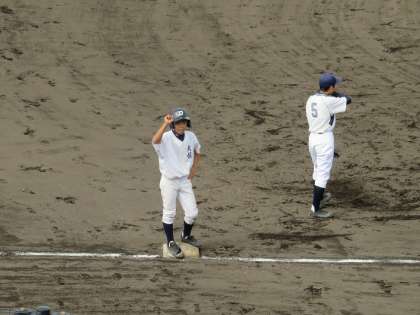 四回の表の攻撃だったと思いますが、ヒットを足掛かりに3塁まで進塁しました。スクイズも考えられる場面でしたが、相手の内野手があまりに前進守備でヒッティングに出ましたが、3塁走者をホームに迎えることはなりませんでした。一度目のチャンスはものにすることができませんでした。
