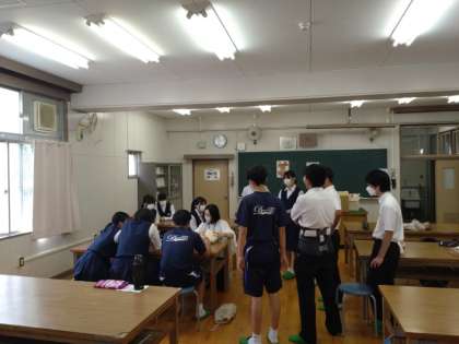 今日の5・6時間目、3年生は高等学校の先生方をお招きしての授業体験でした。