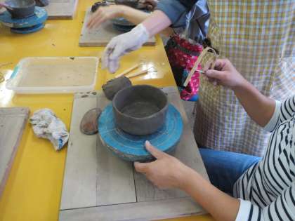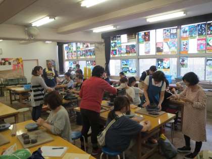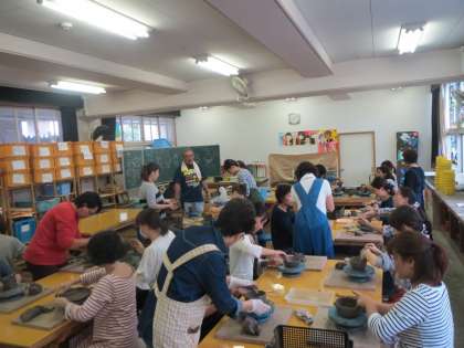 本校の自慢の陶芸窯が久しぶりに日の目をみました。長い間使っていませんでしたので、電気の配線とかいろいろと準備に手間がかかりましたが、今日は保護者の皆様が大勢講習会に参加してくれました。午後の短い時間ですが、みなさん熱心に芸術作品に取り組んでおられました。ありがとうございます。出来上がりが今から楽しみです。