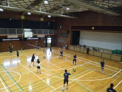 体育館では女子バレーボール部とバドミントン部が活動しています。