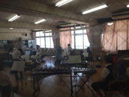 午前中の校内ではその他に、音楽室で吹奏楽部、グラウンドでテニス部が活動しています。