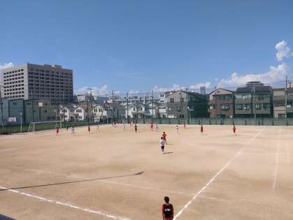 午後のグラウンドでは、サッカー部が他校を招いて練習試合を行っています。
