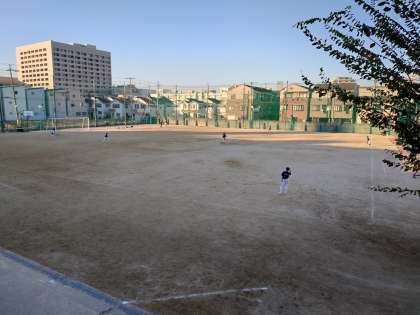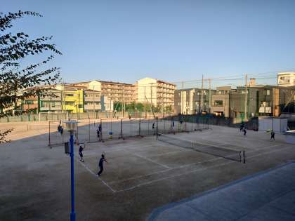 放課後のグラウンドではテニス部と野球部が練習しています。
