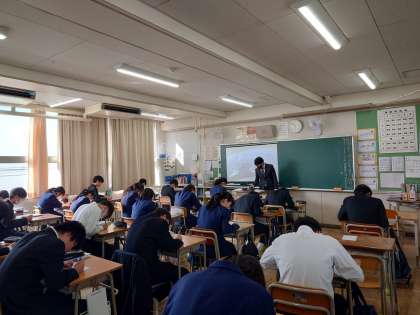 3年生は教育センターをはじめ、外部から来られた方によく授業を参観いただきますので、もう慣れているのか、普段通り真面目に授業に取り組んでいました。