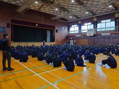 校長先生より明日からの期末テストに向けた激励の言葉がありました。また、校長先生の最近の体験を踏まえ、「相手への思いやりの気持ちを持って接しよう」とのお話もありました。