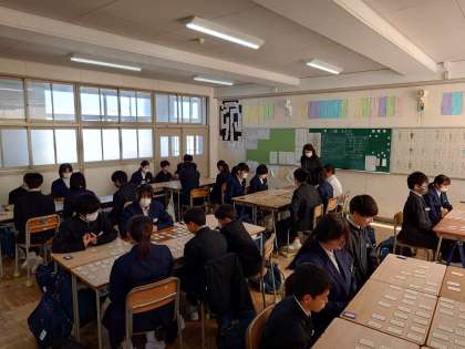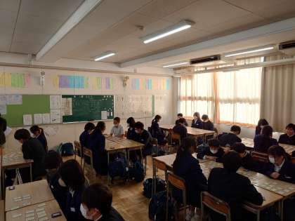 国語の授業の一環として、また、学年行事である百人一首大会に向け、1・2年生で百人一首の取組が進んでいます。