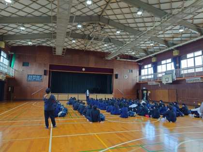 3年生は給食のあと体育館に集合し、事前指導を受けました。