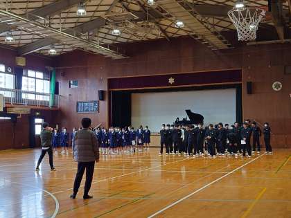 卒業式に向け、3年生が体育館で合唱の練習をしています。