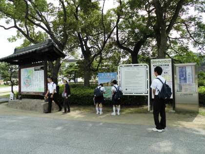 今回の文化祭で生徒会は戦争についてフィールドワークした結果をプロジェクターを用いて発表しました。大阪城の戦跡を訪ねて生徒会のみなさんは大阪城を訪れました。