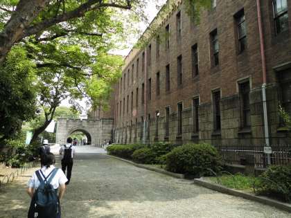 次に訪れたのは旧陸軍第四師団司令部庁舎です。戦争当時ここから多くの戦争に関する命令が発せられました。とても大きな建物で軍の権力の大きさを感じさせられました。次に大阪城の石垣を訪れました。1945年に大阪大空襲で爆弾が落とされた際に、石垣が爆弾の威力でずれてしまった跡や機銃掃射痕も見られました。
