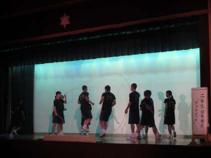 2年生はダブルダッチをします。ダブルダッチは簡単そうに見えますが、「普通に入って、とんで出る」という動作がなかなかできませんでした。ですが、ダブルダッチのメンバー全員が本番までに演技を完璧にしようと頑張りました。とても難しい技にも挑戦します。実行委員は夏休みから練習を始め、他のメンバーもそれぞれ実力が追いついてきたと思います。2年生ダブルダッチメンバーの演技、きっといいものになるのでぜひ楽しんでください。