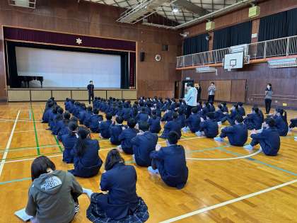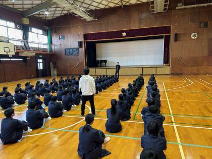 登校後、すぐに1年生は学年集会を行いました。