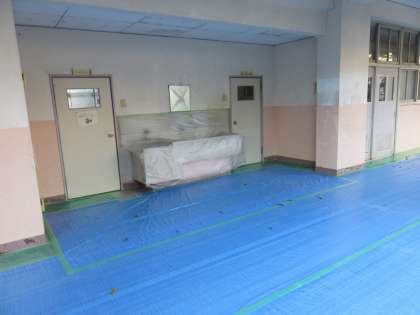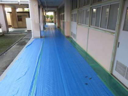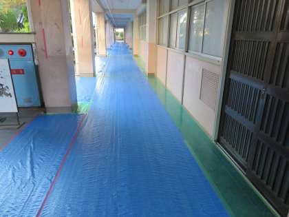 先週から工事に入っています南校舎の塗装工事は、東側の階段の塗装を終えて、1階の廊下の作業に移っています。今週末で完成の予定です。この作業を終えますとどの校舎も外壁・内壁ともに塗装が美しくなります。美しい校舎で気持ち良く子どもたちが学校生活を過ごしてくれることを願っています。