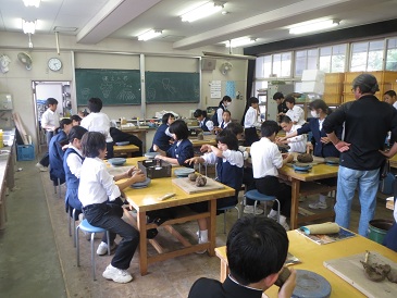 6時間目の1年3組の美術の授業の様子です。今年から陶芸が授業のメニューに入り、今日は「縄文土器作り」の授業でした。子どもたちは粘土を自分のイメージした形に作る練習を何度もしていました。一生懸命に取り組んでいる姿が印象的でした。