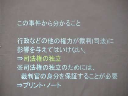 現在の民主政治と社会という単元で司法権の独立という内容の授業です。この授業でもプロジェクターが活躍していました。