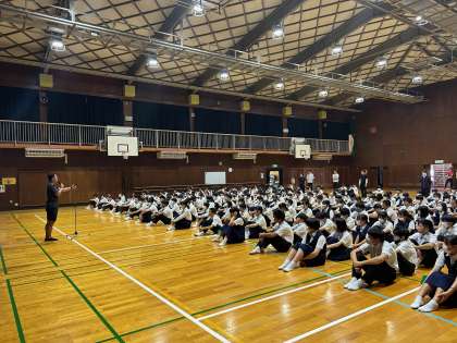【7月8日月曜日】 全校集会を行いました。 夏休みまで2週間、しっかり準備しよう。