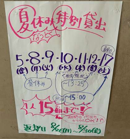 夏休み特別貸し出しのお知らせです。