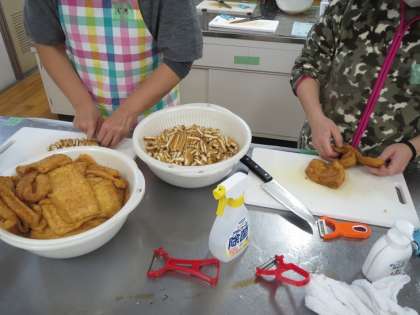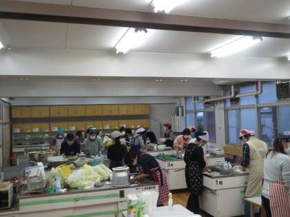 調理室では皆さんが手分けして豚汁の準備をしてくれていました。明日は少し寒いようですが、天気は良さそうです。生徒の皆さんはお餅と豚汁で心も身体も温まってくれたらと思います。PTA保護者・地域の皆様、よろしくお願いいたします。