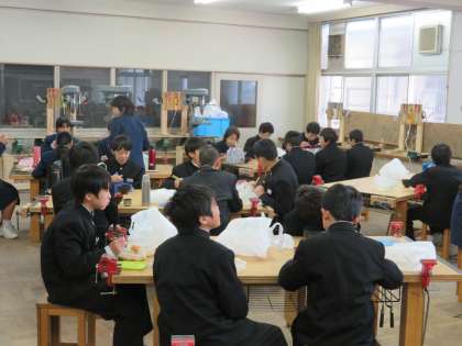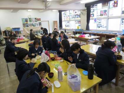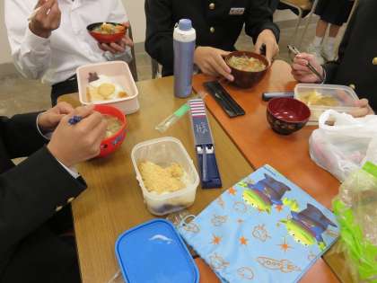 1年生の様子です。1年生は1階の特別教室でいただきました。