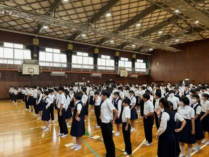 【9月30日月曜日】 久しぶりに全校集会を行いました。 後期の認証式を行いました。