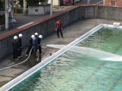 プールでの放水訓練の様子