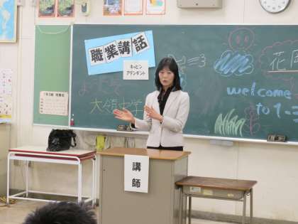 香ヶ丘リベルテ高等学校からは航空会社でキャビンアテンダント(客室乗務員)として勤務された経験のある先生から仕事の内容、厳しさ、心構えなどを教えていただきました。華やかにみえる仕事ですが、勤務には大変な厳しさが求められます。改めて仕事をすることの厳しさを教えていただきました。ありがとうございました。