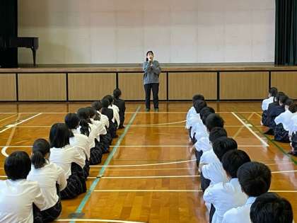 定例の学年集会で、中学生でも請願できるという話から、何事もしっかり説明を聞いて行動することが大切だということを学びました。