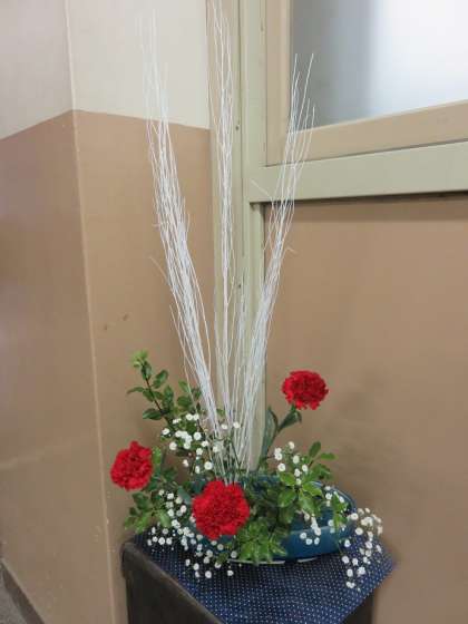事務室まえに新しい生け花