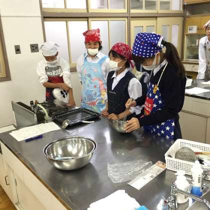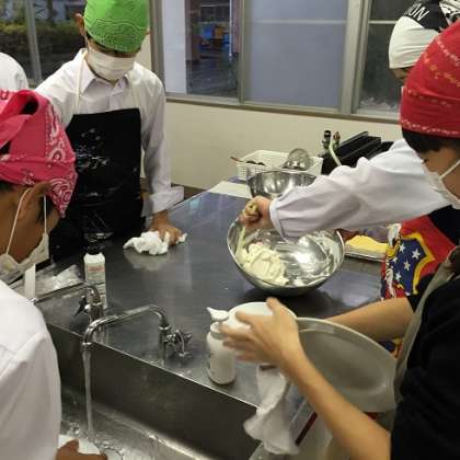 1年生の調理実習が12月11日〜14日にありました。メニューはクリスマスが近いこともあって「シフォンロールケーキ」でした。シフォンケーキはシフォンケーキ型がないとつくれないと思われがちですが、高さにこだわらなければ専用の型がなくてもできるのです!しかも、バターの価格が高騰しているので、一班一個のバターを使うのはもったいないということもあり、「食用油」で作れるシフォンケーキとなりました。本当はこのシフォンケーキをブッシュ・ド・ノエルに仕立てようかとも思いましたが、時間的に厳しいのでロールケーキにしました。