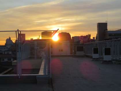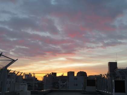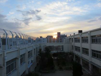 今朝出勤して校舎を開けてから屋上に上がって東の空を見上げたらとてもきれいでしたので、アップしました。大領中学校では桜やいろいろな花が咲く春がもっとも美しいですが、アングルを変えたらこんな美しい朝焼けもあるのだと認識を新たにしました。