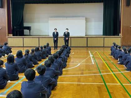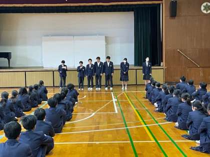 水曜日の1年生学年集会で、今月の委員会からの目標と、インターンシップで来られた大学生の方々の紹介がありました。