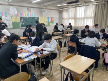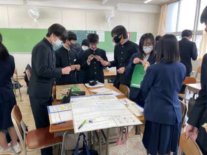 3年生の社会の授業で、株式会社で商品やサービスを企画し、プレゼンして模擬投資を行いました。