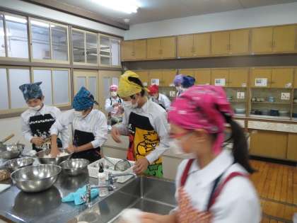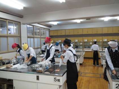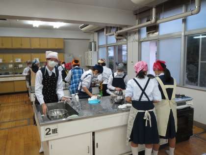 1月18日(月)は1年3組のうどん打ち体験でした。すでに1-1からどんなに時間がかかるか聞いていた生徒もいたようで、集まりも上々!二時間目が始まる前の休み時間には生徒が集まり始めました。開始早々、うどん打ちの手順ビデオをプロジェクターで流すとしっかりと聞いていたようにみえましたが・・・「いつも成功ばかりの3組さん」「作業の早い3組さん」「片づけの早い3組さん」・・・なのに、残念!!!気の緩みからか、1年生最後の調理実習なのに大失敗の班が続出!!