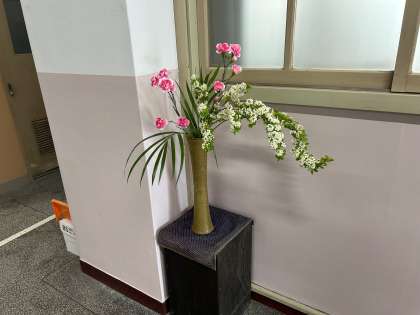 職員室横の廊下にはいつも綺麗なお花が飾られています。地域の方方ありがとうございます!